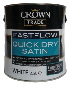 Crown Trade FastFlow Quick Dry Satin is a high quality, high opacity waterborne paint which is suitable both internal and external use. The finish is a flat mid-sheen which is less glossy than Dulux Quick Dry Satinwood and it is highly durable. #Crown FastFlow Quick Dry Satin is an excellent paint, it has the feel of a solvent based satin when it is being applied, it has very good obliteration qualities and the paint film finish achieves what I class a traditional satin appearance. It has very good mechanical adhesion to other paint films including solvent based paints. The coverage is also impressive and it can obliterate darker colours in 3 coats. The finish on larger panels is solid and even and the flow quality helps eliminate unsightly brush marks.